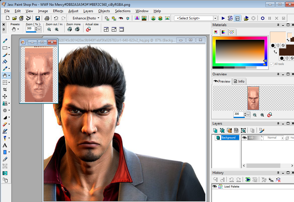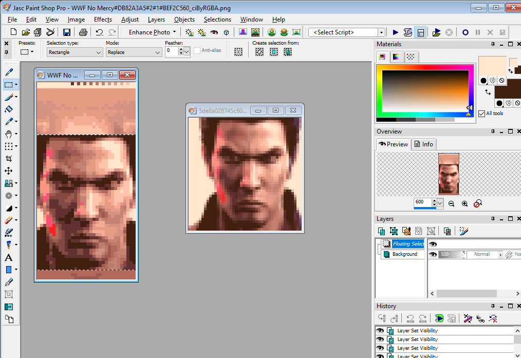Open the graphic you want to use in paint shop pro. Also open up one of the default faces which resembles the face you want to use.